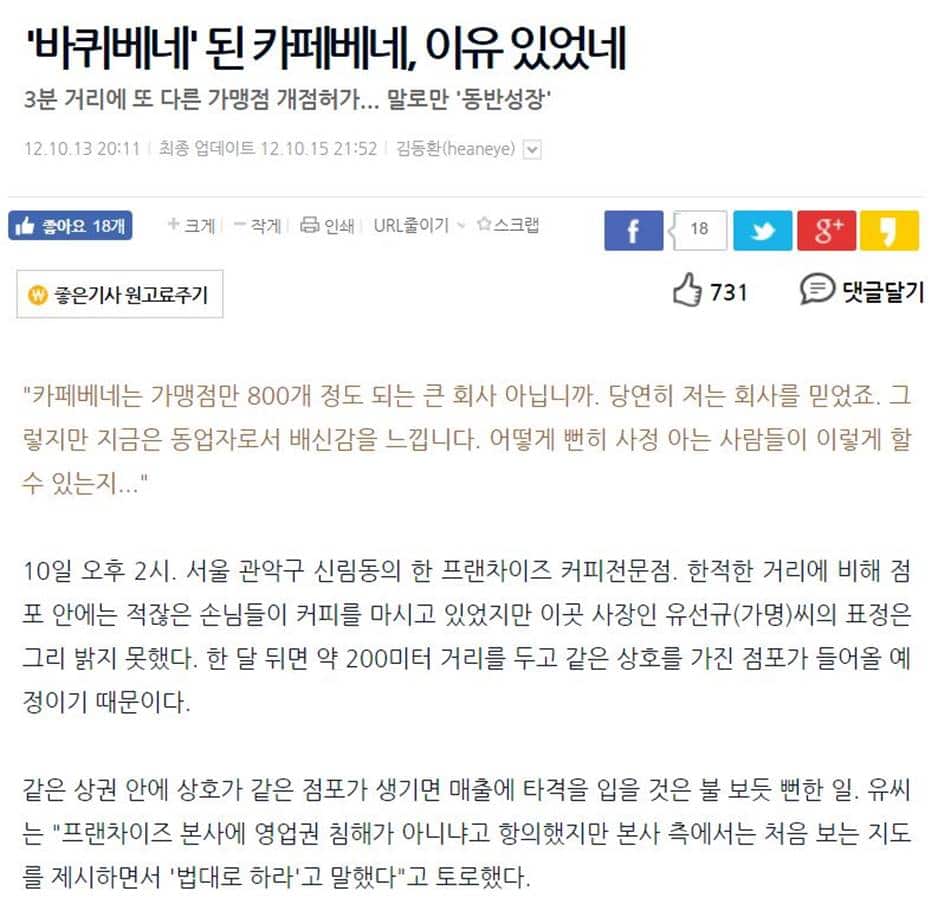 이번 카페베네 케이스를 살펴보면서 카페베네 회사에 대해서 매우 실망하는 계기가 되었습니다. 카페베네관련 이런 저런 이야기들을 들으면서 울분이 참을 수 없을 정도로..