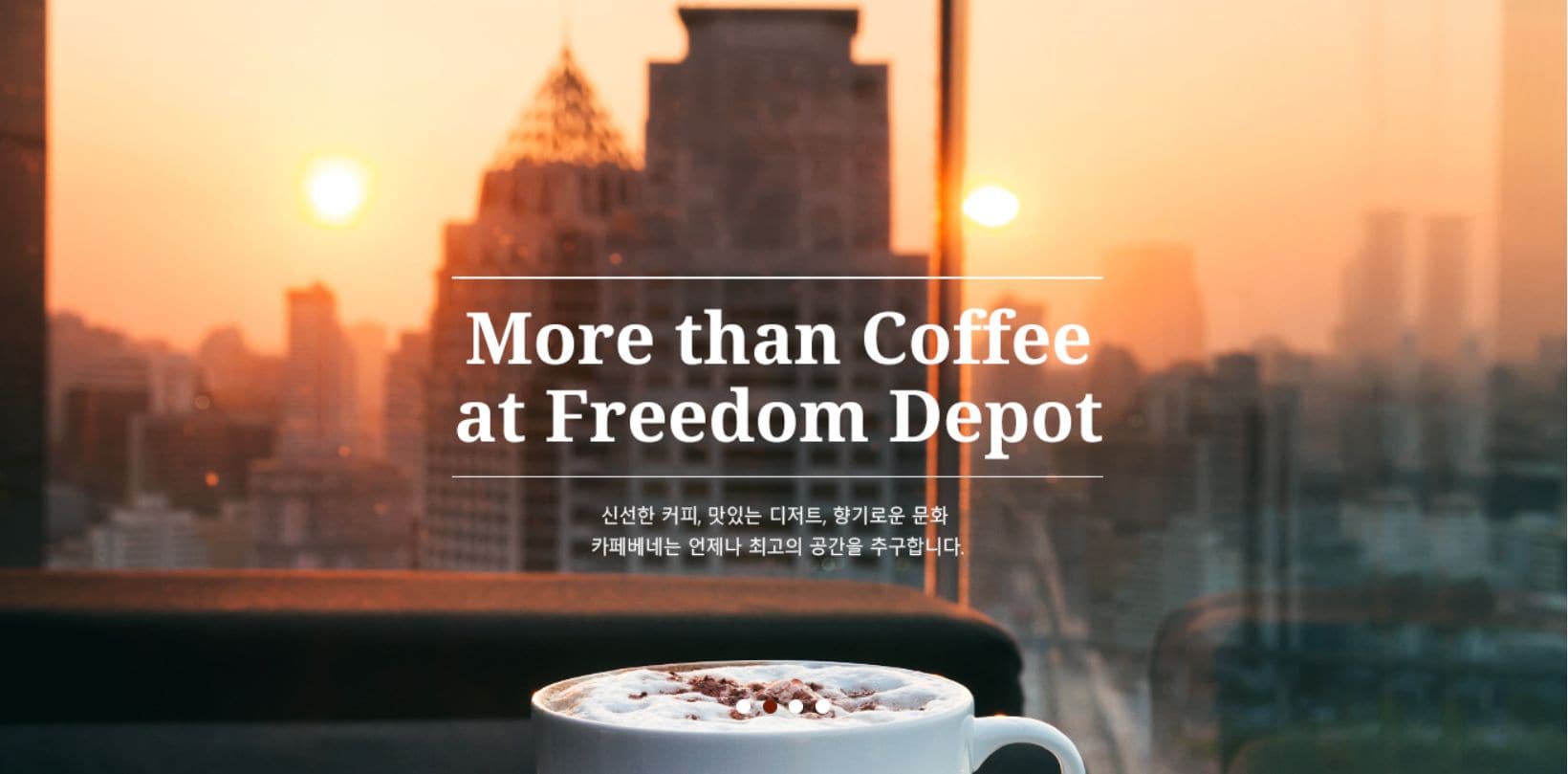 ▽ 카페베네 홈페이지 메인 이미지, 그들고 자신들의 정체성을 Coffee로 이야기 하고 있습니다. More than Coffee at Freedom Depot