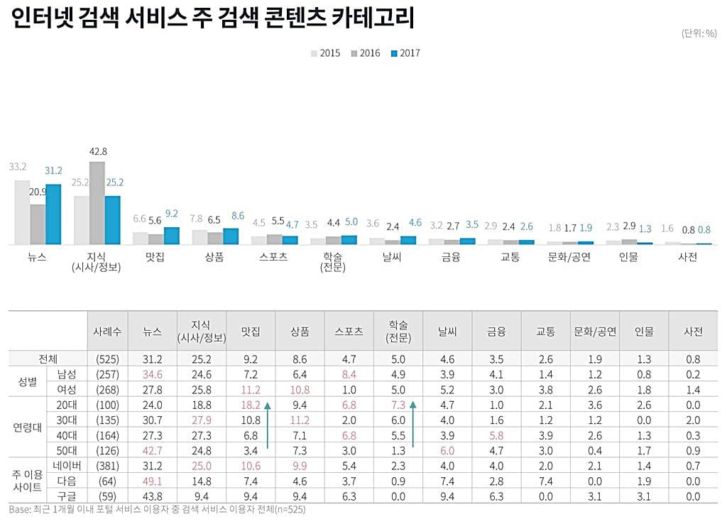 2017년 4월, 소셜미디어 및 검색 포털에 관한 리포트 2017