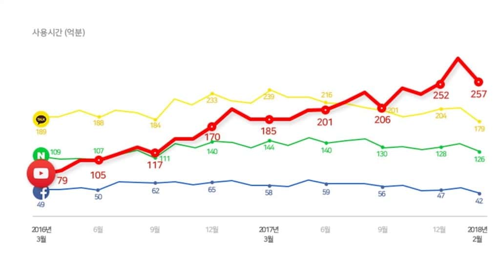 - 2018년 1월 기준 카톡 MAU(월 사용자 수 Monthly Active User)는 2,931만명, 2위는 페메(페이스북 메세지) 524만명, 3위는 라인(Line)로 여전히 카톡이 수위이다.