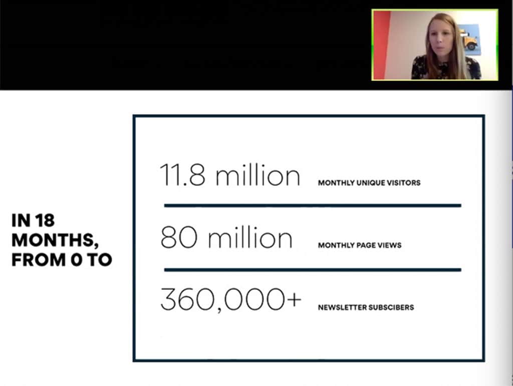 지난 1년 반동안 사업에서 악시오스는 월 방문자 1,180만명, 월 8,000만 페이지뷰 그리고 36만 명의 뉴스레터 구독자로 성장했습니다.