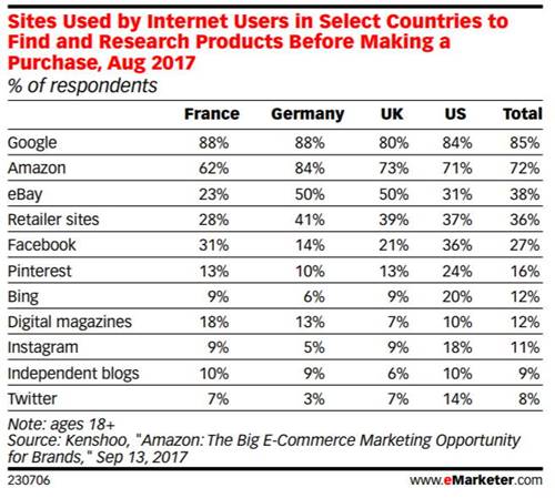 반면 구글이 대다수를 차지하는 서치 엔진을 통한 검색 이용률은 2015년 34%에서 2016년 28%로 떨어졌으며 특히 유통업체들의 검색 이용률은 기존 21%에서 지난해 16%로 5%포인트 하락해 구글로서는 대안을 마련해야 하는 처지에 몰렸다고 지적하고 있습니다.