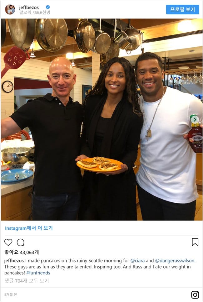 올 54세인 베조스는 워싱턴 포스트지를 소유하고 있죠. 오늘 그는 850명의 기자들과 350명의 기술자들을 수용하고있는 (워싱턴 포스트) 뉴스룸을 뛰어넘는 리본을 자른 것입니다. 그는 언론을 변호하며 박수를 받았습니다.