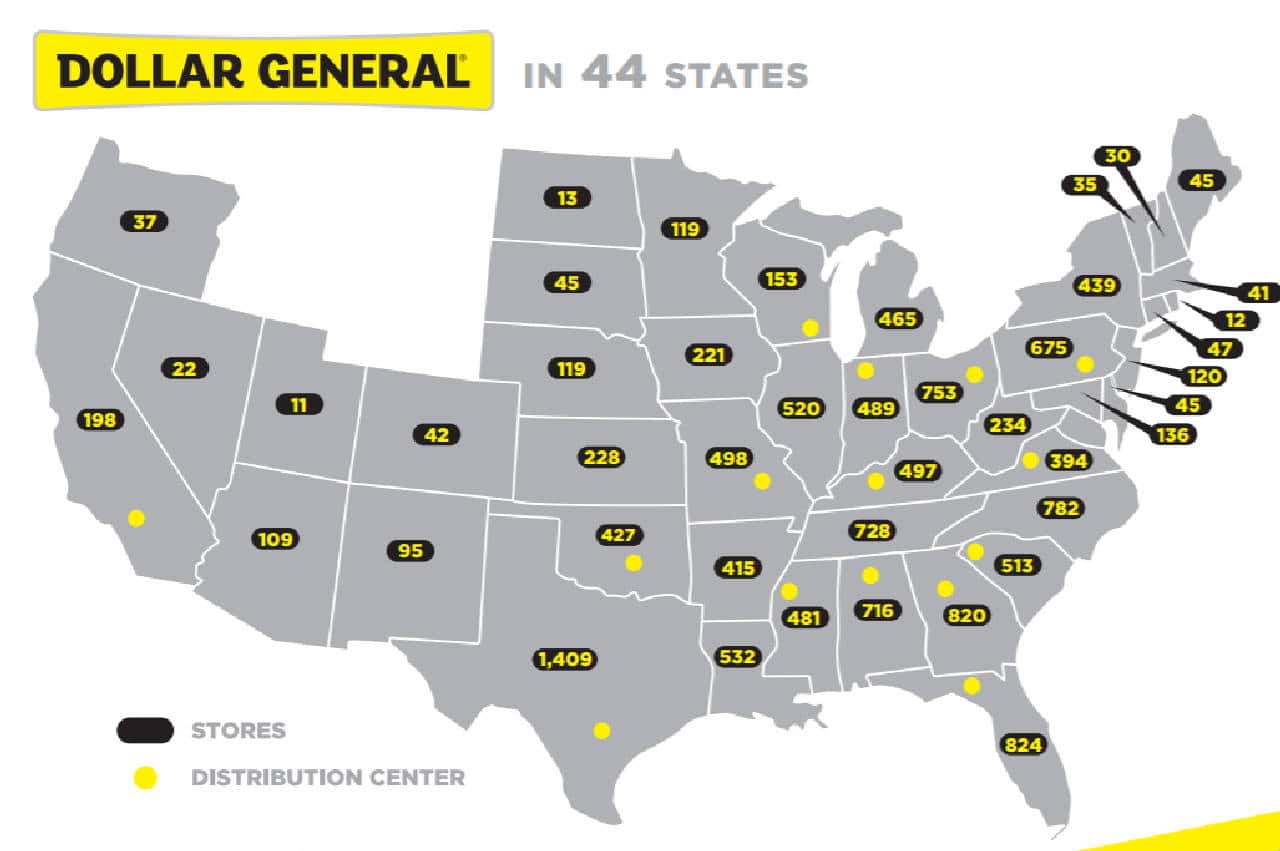 달러 제너럴(Dollar General)은 현재 5마일(8km)이내 달러 제너럴(Dollar General) 매장이 커버할 정도라고 밝히고 있습니다.