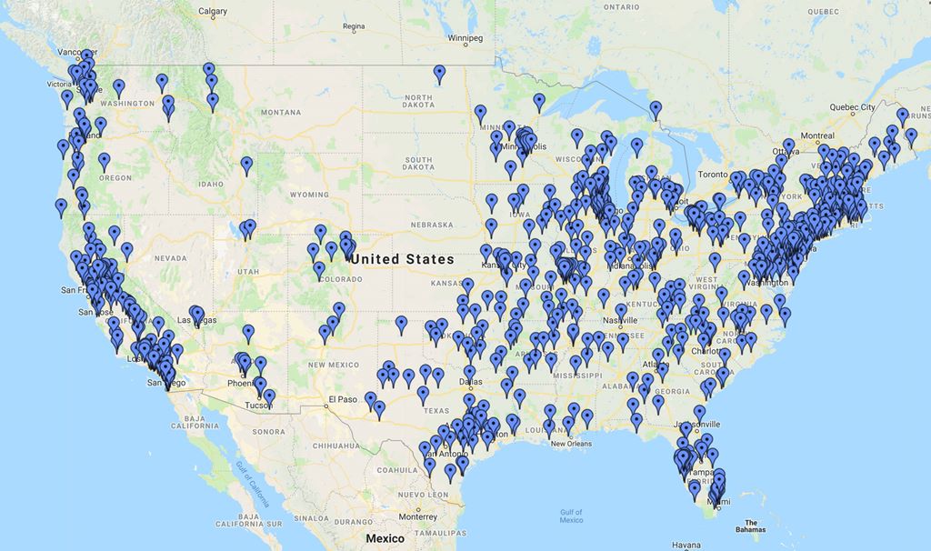 월마트 미국 내 매장 위치 맵, 구글맵 기준