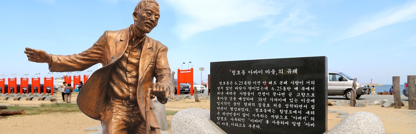 점점  청호동에는 북쪽에서 내려온 피난민들이 대부분 거주하게 되면서 “아버지”의 함경도 사투리인 “아바이”를 사용하여 “아바이 마을”이라고 불리우게 되었다고 한다.