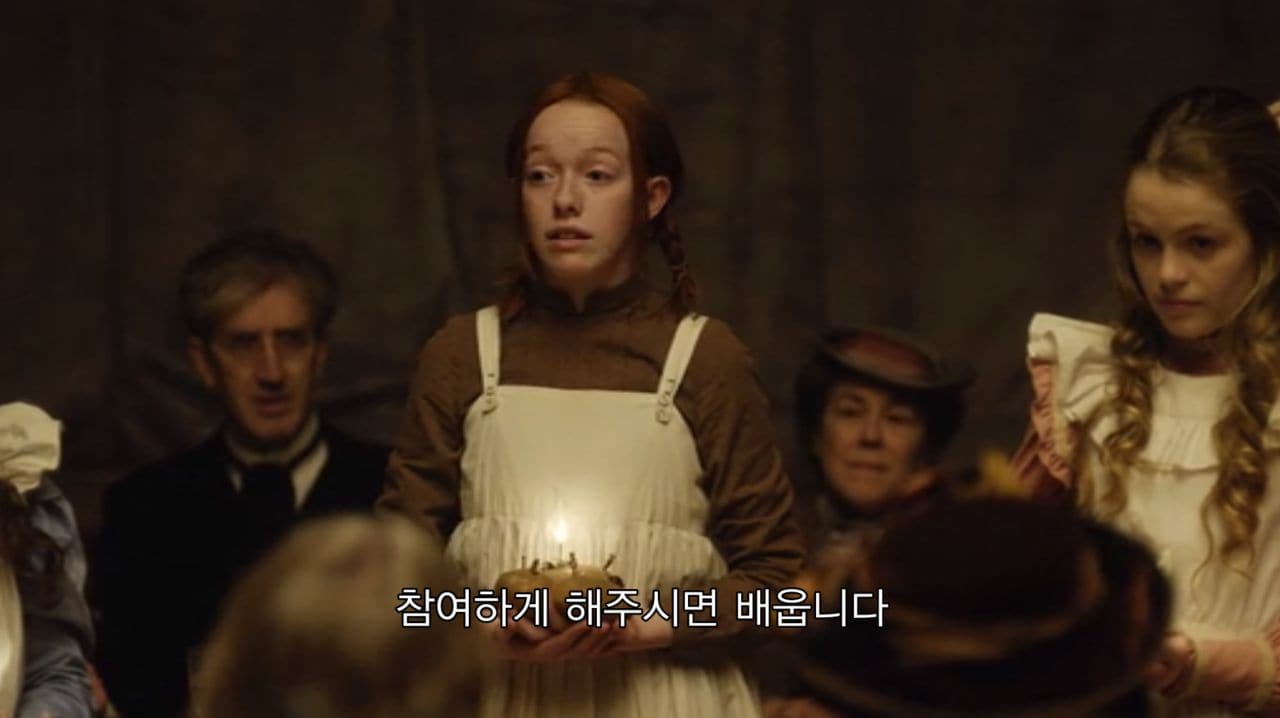 불 밝혀진 전구를 들고 친구들과 나타난 앤이 실습을 통한 학습이 얼마나 유용한지를 웅변합니다. 이에 평소 말이 없던 매슈와 마틸라도 이를 거들죠.