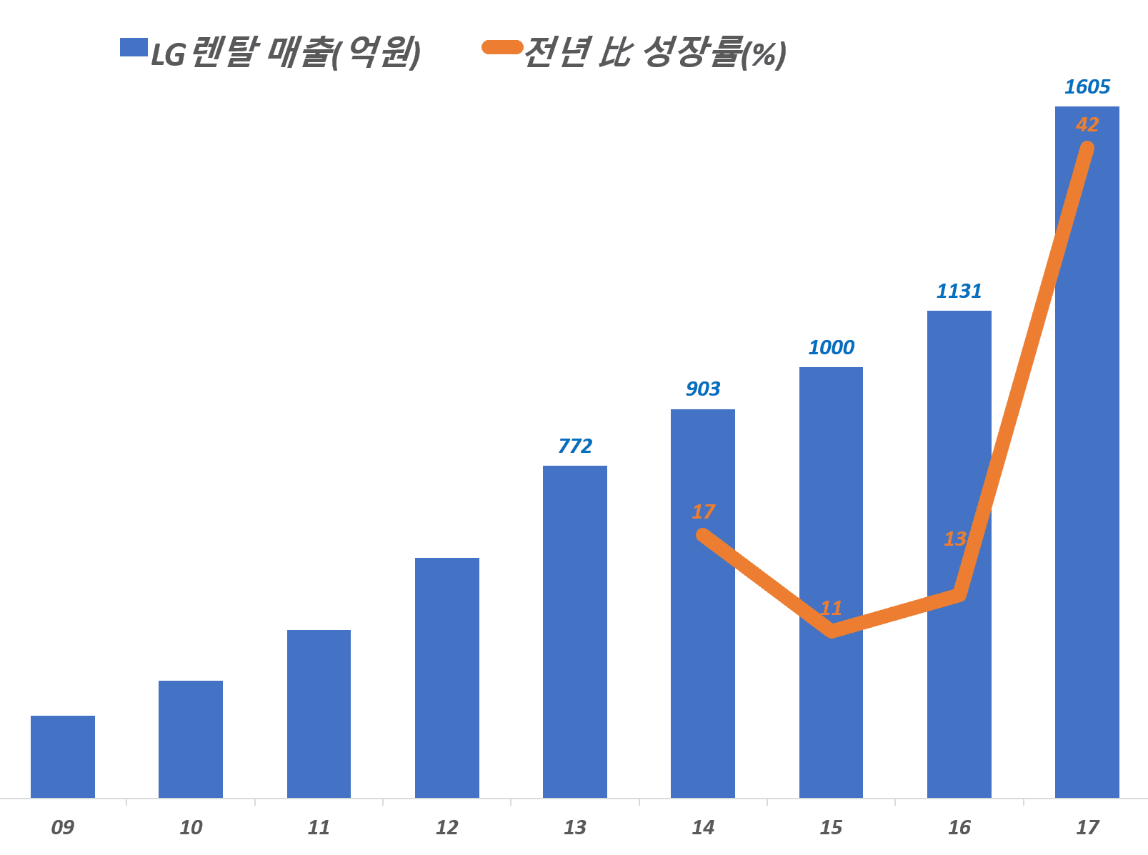 위에서 지속 설명한 것처럼 2016년까지 LG렌탈의 성장은 상대적으로 높지 않았다. 경쟁사를 쫒아가기엔 너무 벅찬 상태가 계속되고 있었다.