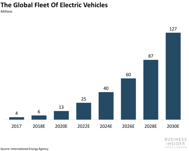 전기자동차 시장 판매량 규모 예측, Data Source – Internation Energy Agency, Graph by Business Insider