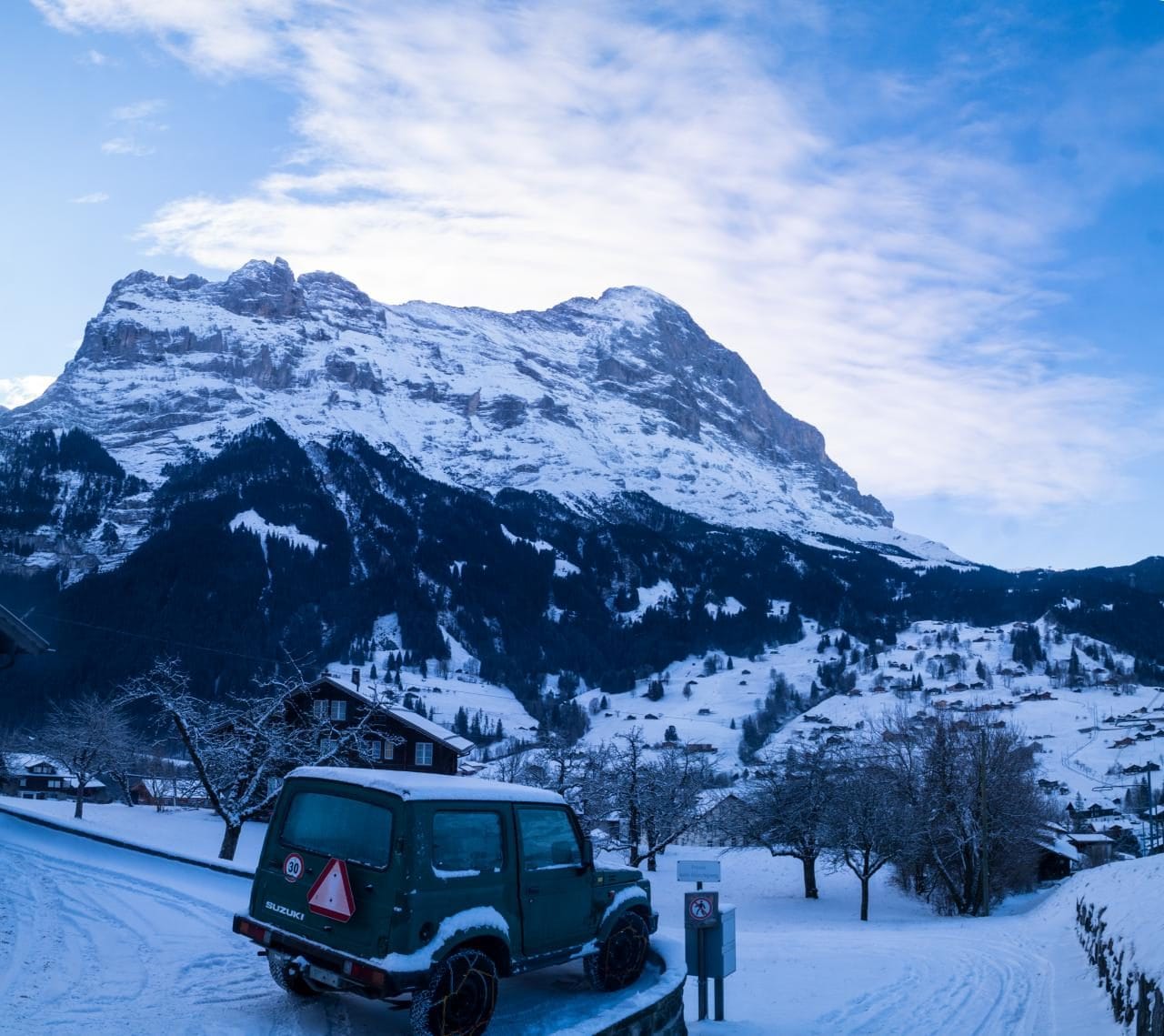 스위스 자동차 여행 – 그린델발트 눈내린 겨울 풍경과 아이거산 품경, Image by Happist