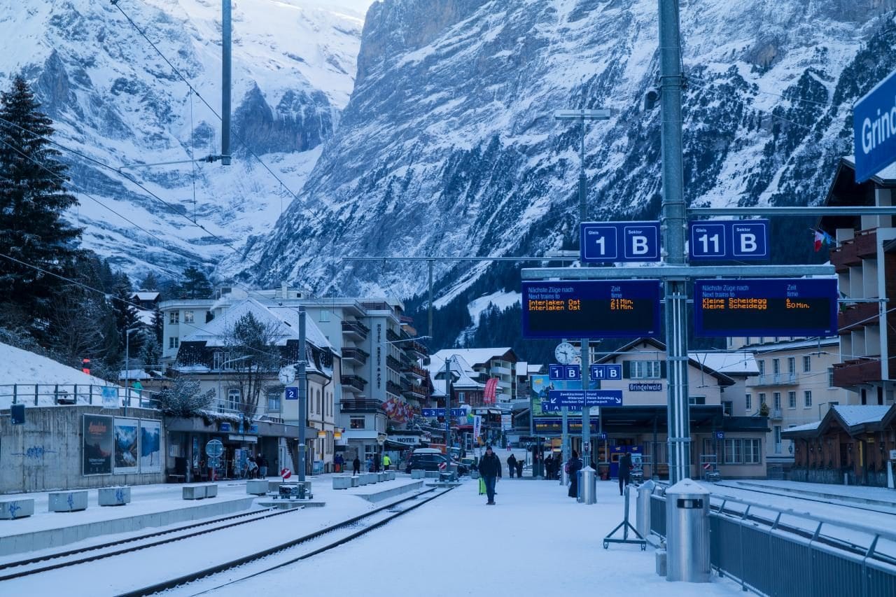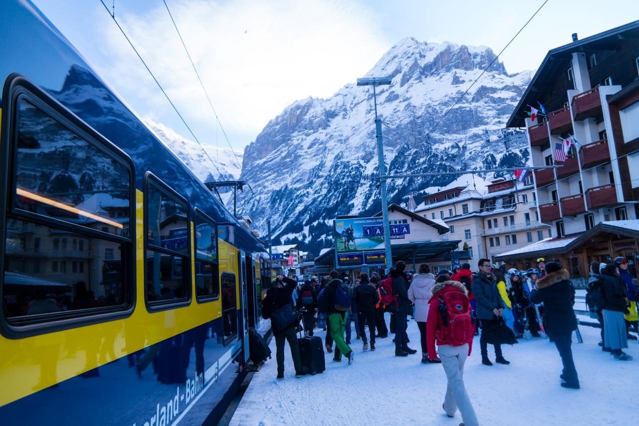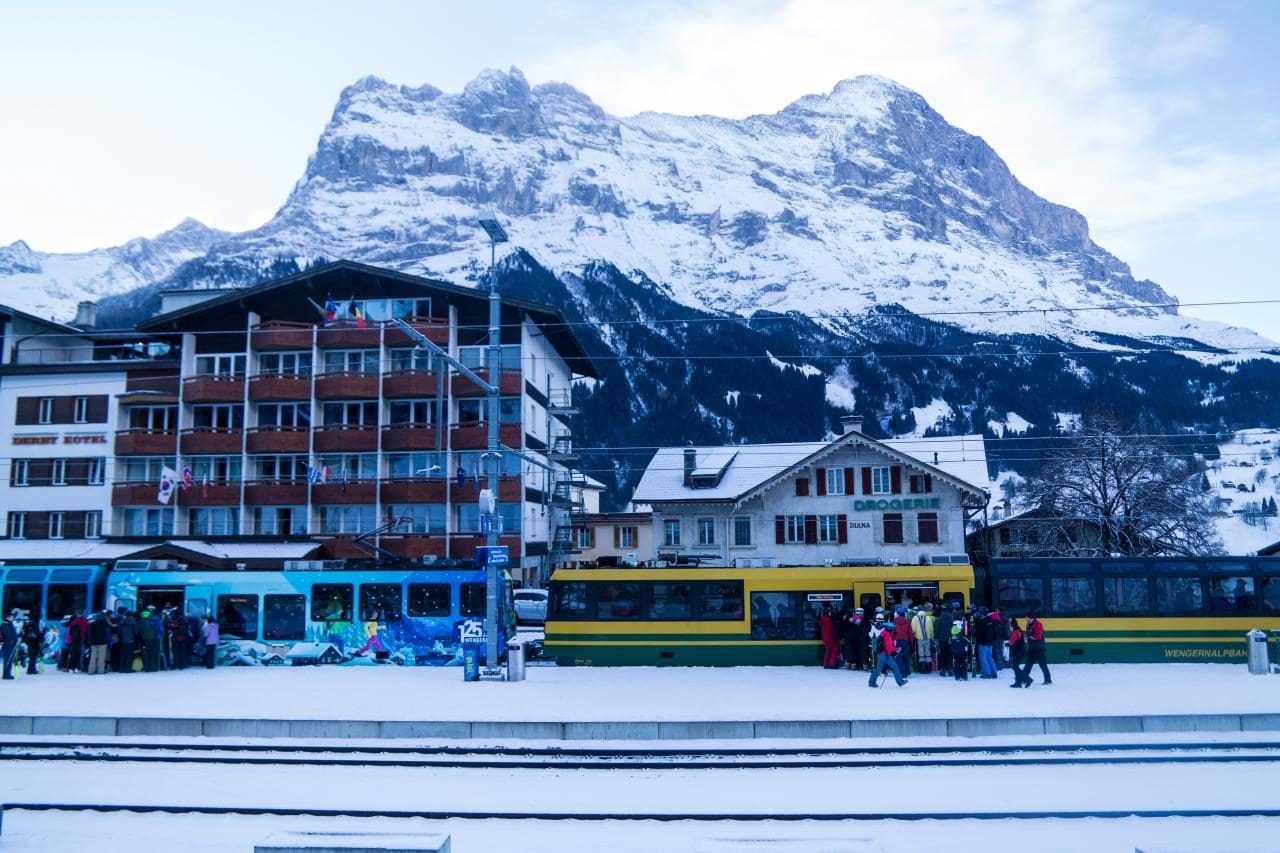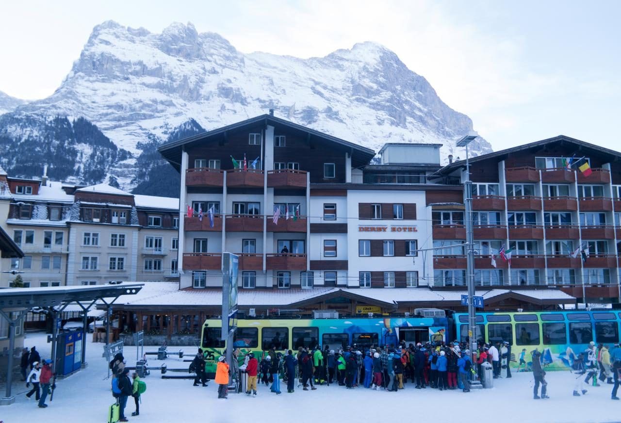 스위스 자동차 여행 – 그린델발트역 풍경, 수많은 스키어들과 여행객들로 붐비고 있다, Image by Happist