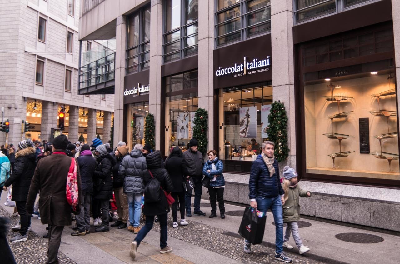 이탈리아 자동차 여행, 밀라노 대성당 옆 비토리오 에마누엘레2세 갤러리(Galleria Vittorio Emanuele II)에 있는 초콜라티 이탈리아니 매장, Image by Happist