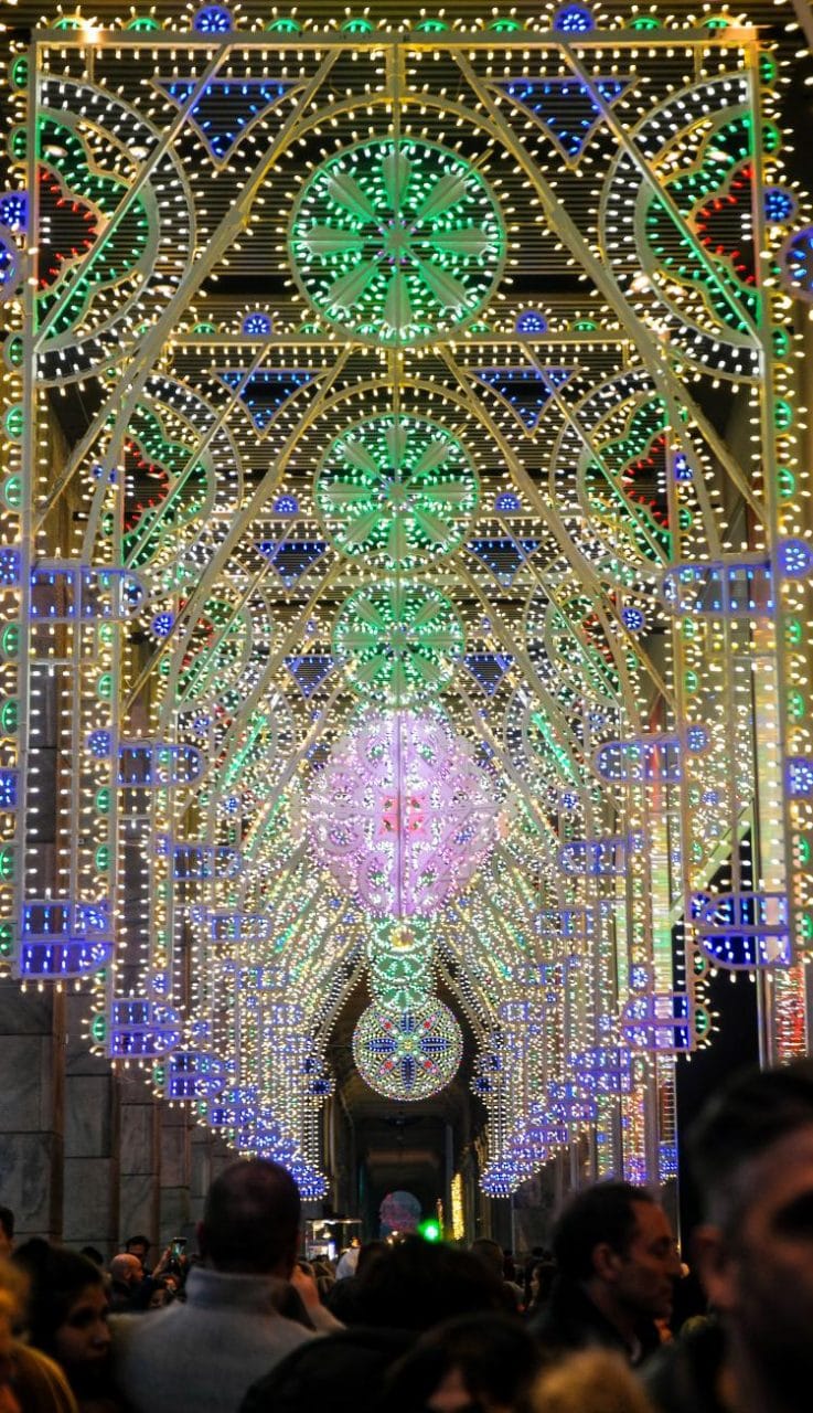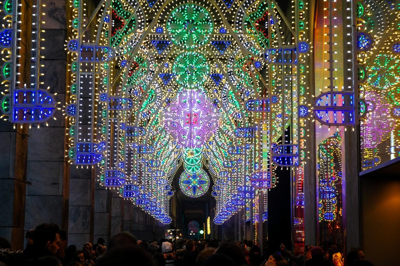 이탈리아 자동차 여행, 밀라노 대성당 옆에 있는 비토리오 에마누엘레2세 갤러리(Galleria Vittorio Emanuele II) 내부 빛으로 장식된 풍경, Image by Happist