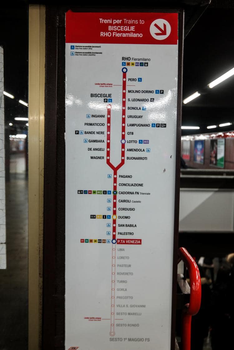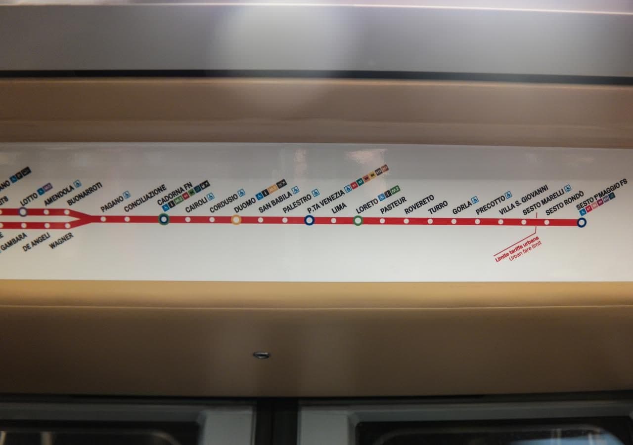 이탈리아 자동차 여행, 밀라노 메트로 내에서 메트로 방향 안내 표지, Image by Happist