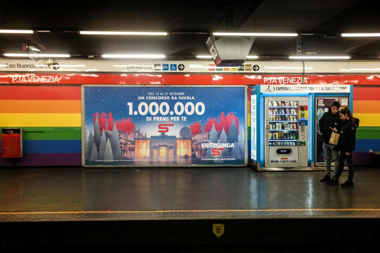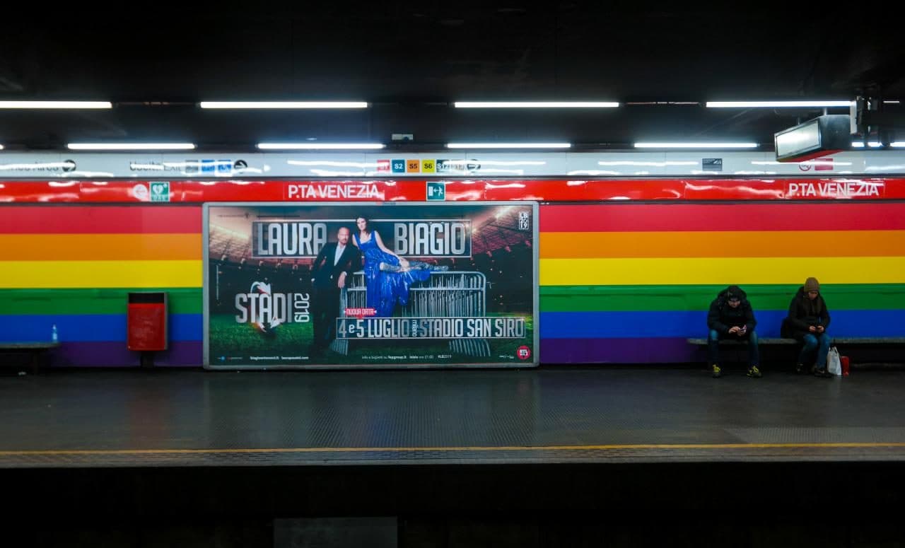 이탈리아 자동차 여행, 밀라노 메트로역의 광고와 승객 풍경, Image by Happist