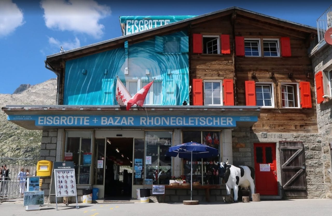 스위스 자동차 여행, 푸르카 패스 벨베데레(Belvédère) 호텔 메인 입구의 기념품점, 주의 Image - Green Klwil