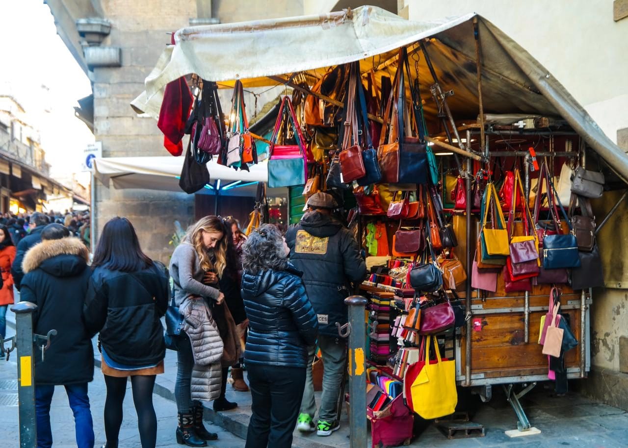 이탈리아 여행, 피렌체, 베키오다리(Ponte Vecchio)의 가죽 가방 판매 노점, Image – Choi dongsoon