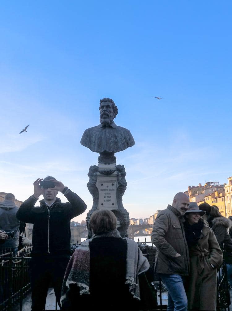 하류 방향으로는 벤베누토 첼리니(Benvenuto Cellini) 동상이 서있다. 사람들은 그 동상을 주변으로 이곳에 왔노라는 증표를 나기느라 정신이 없다.