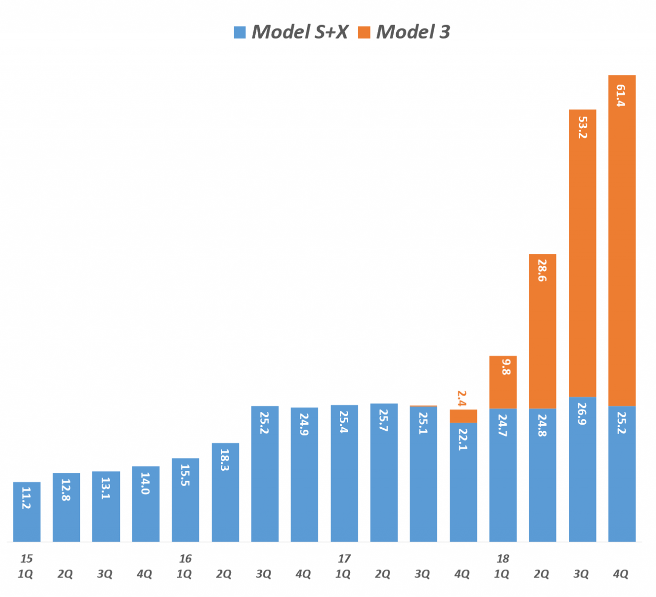 이에 따라 2018년 한해동안 모델 3 145,846대와 99,394대의 모델 S 및 모델 X를 출하해 전년 比 138% 증가했습니다.