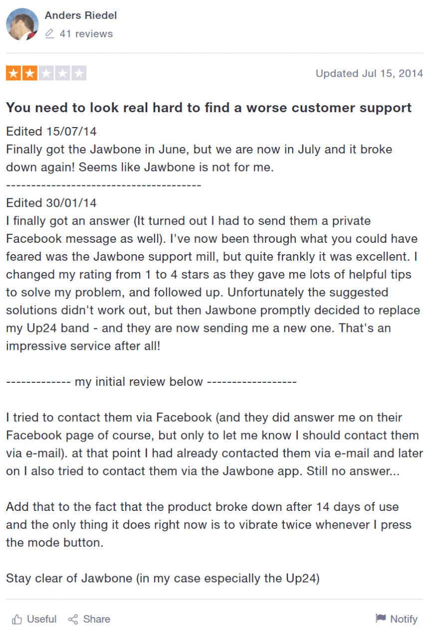 평소에 조본의 소비자 대응이 좋았던 것은 아닙니다. 조본 피트니스 트래커가 한참 성가를 올리던 2014년에도 조본처럼 고객 서비스를 힘들게 받을 수 있는 곳을 찾기 어려울 정도로 문제가 많다는 소비자 지적입니다.