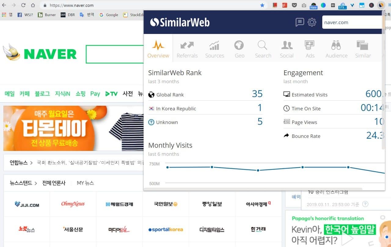 사이트 통계를 알려주는 SimilarWeb 설치하러 가기