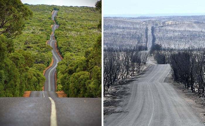 호주 산불의 참혹을 잘 보여주는 전후 비교 사진