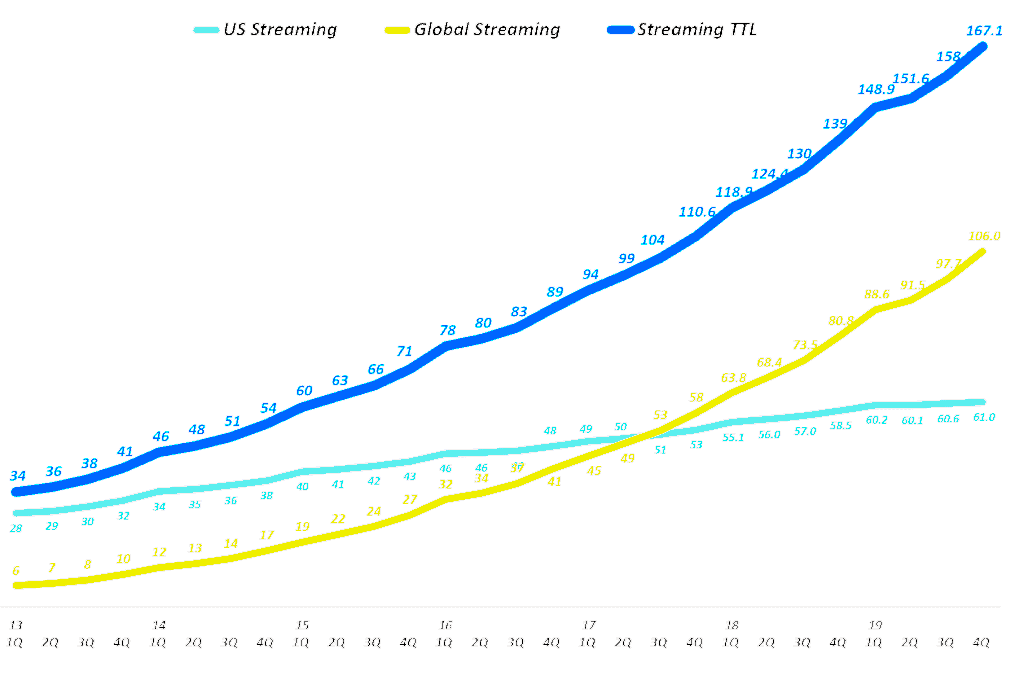 ![[실적 차트] 넷플릭스 연도별 매출 및 손익 트렌드 차트(98 ~ 2019) 3 넷플릭스 분기별 스트리밍 서비스 유료 구독자 수 추이(2013년 1분기 ~ 2019년 4분기), Quarterly Netflix Streaming Service Global Subscriber additions(M), Graph by Happist](https://happist.com/wp-content/uploads/2020/01/%EB%84%B7%ED%94%8C%EB%A6%AD%EC%8A%A4-%EB%B6%84%EA%B8%B0%EB%B3%84-%EC%8A%A4%ED%8A%B8%EB%A6%AC%EB%B0%8D-%EC%84%9C%EB%B9%84%EC%8A%A4-%EC%9C%A0%EB%A3%8C-%EA%B5%AC%EB%8F%85%EC%9E%90-%EC%88%98-%EC%B6%94%EC%9D%B42013%EB%85%84-1%EB%B6%84%EA%B8%B0-2019%EB%85%84-4%EB%B6%84%EA%B8%B0-Quarterly-Netflix-Streaming-Service-Global-Subscriber-additionsM-Graph-by-Happist.png)