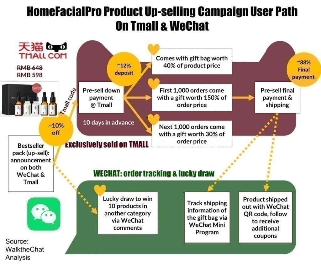 HomeFacialPro와 같은 일부 중국 브랜드들은 (커뮤니케이션 채널인) WeChat에서 이커머스 플랫폼인 Tmall로 사용자들을 끌어 모을 수 있는 진화된 인센티브 시스템을 갖추고 있습니다.