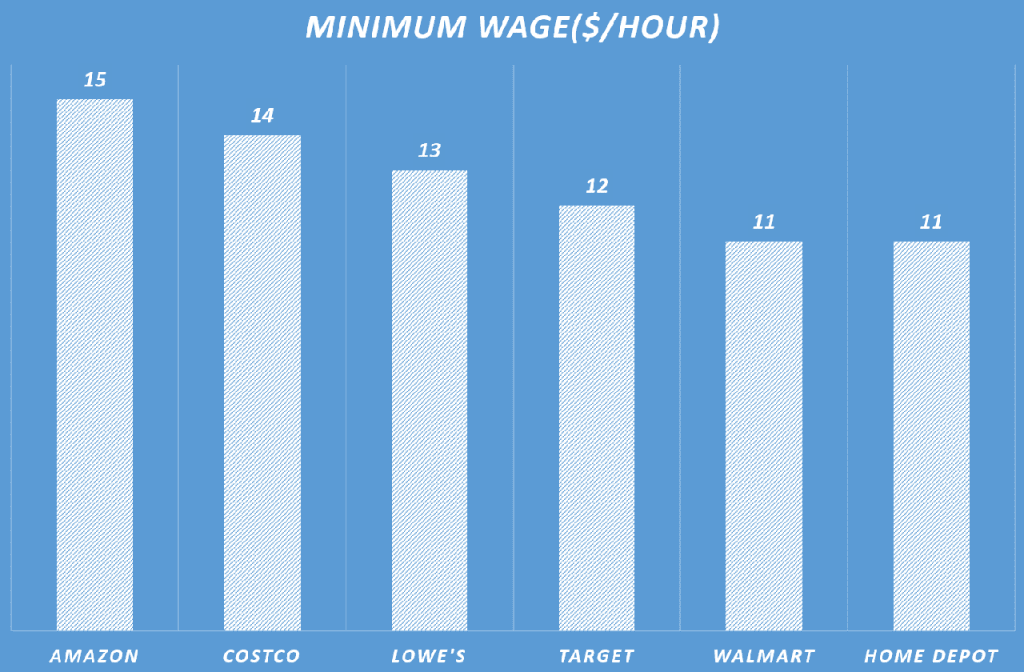 사실 타겟의 최저 임금은 그리 높은 편은 아니었죠. 2018년 아마존이 최저임금을 15$로 인상 시 타겟은 12$로 중간 정도 수준이었습니다.