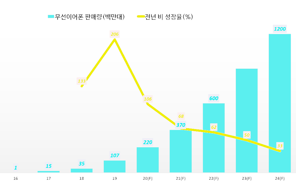 - 무선이어폰은 2016년에 판매량이 100만대에 불과