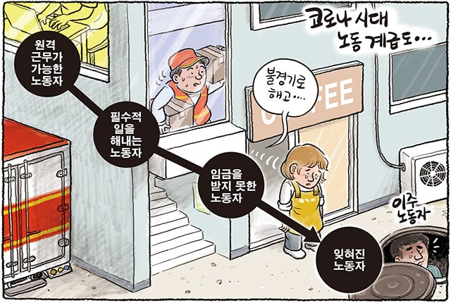 코로나시대 새로운 노동계급, 한겨례 그림판