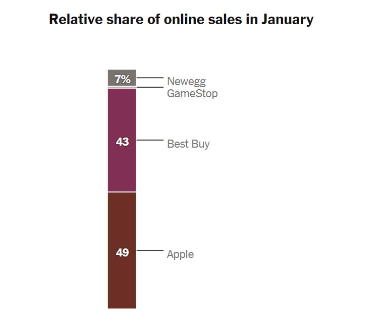 그러나 코로나 펜데믹이 시작되면서 양상이 달라졌습니다. 애플은 중국 공장 폐쇄로 공급에 어려움을 겪었습니다. 반면에 GameStop은 훨씬 작은 플레이어였지만 집에서 즐기에에 충분한 게임을 공급할 수 있었습니다.