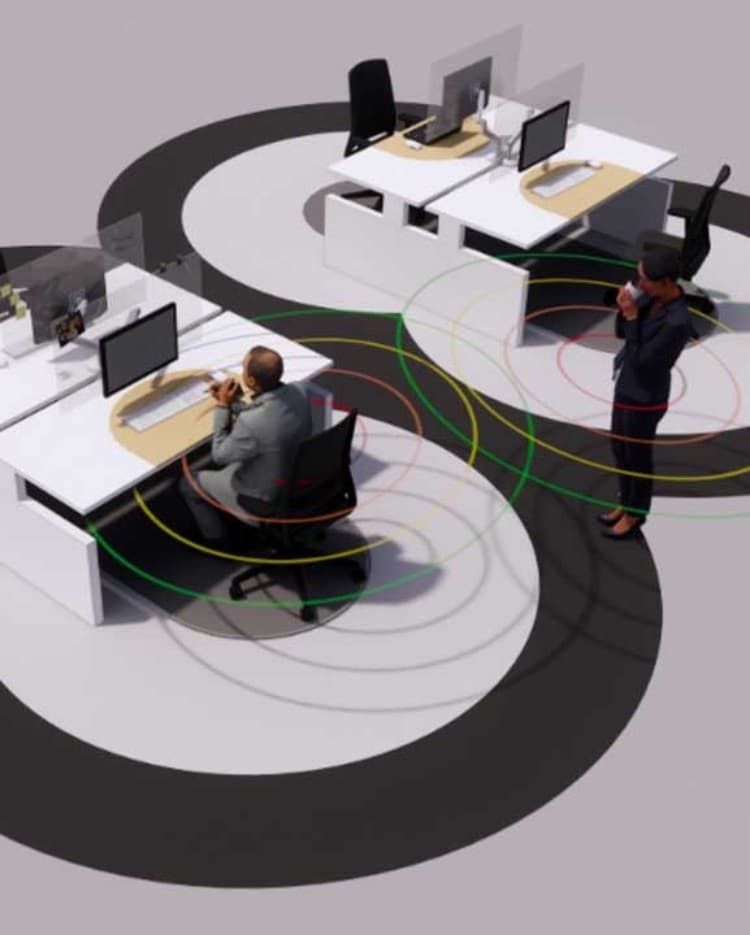 그렇기 때문에 코로나 팬데믹에 대응하기 위해 6피트 오피스 개념도 등장했습니다. 여기서는 회사 내 모든 활동 시 6피트 거리 유지가 가능한 사무실을 제안하고 있습니다.