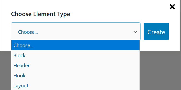 이 중 Element를 클릭해 훅 타입을 선택해 새로운 Elements를 만듭니다. 이는 Add New Element 버튼을 누르면 아래 이미지와 같이 새로 만들려는 Element 타입을 선택할 수 있습니다.