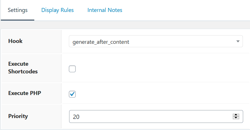훅 엘리먼트(Hook Element) 디스플레이 룰 세팅