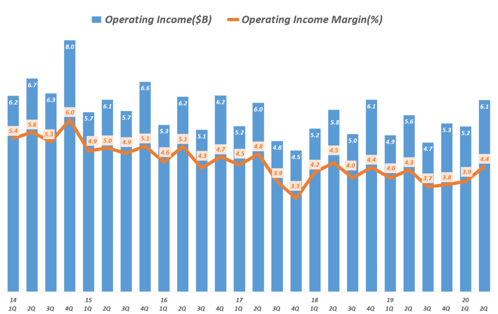 • 2분기 영업이익 61억 달러로 영업이익률 4.4%