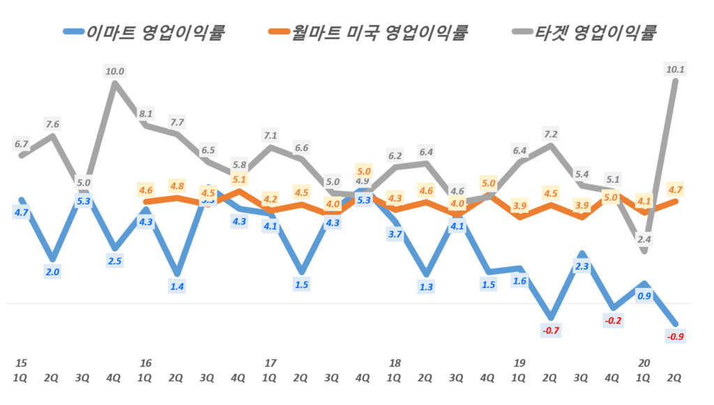 왜 이런 차이가 나오는지 미국 오프라인 유통업체 월마트, 타겟과 한국 이마트간 비교를 통해서 그 원인을 살펴 봤습니다.