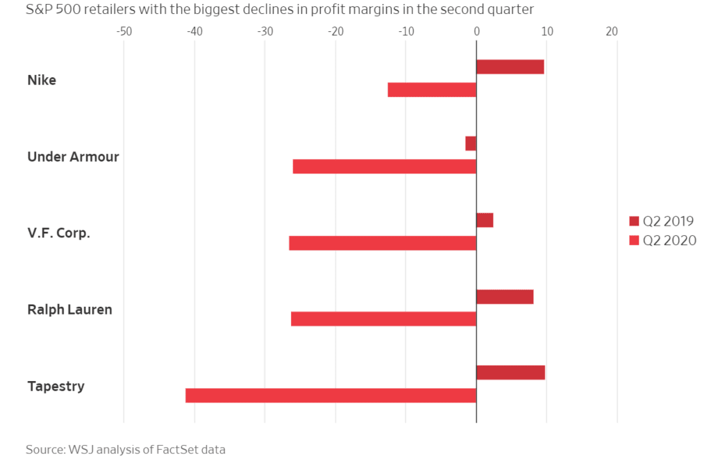 20년 2분기 S&P 500에 속하는 유통업체들의 이익이 악화된 기업들, Image from WSJ