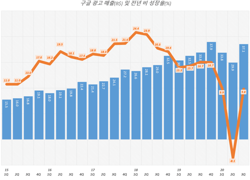 . 디스플레이 광고도 팬데믹으로 수요 감소(-9.8%)를 겪을 수 밖에 없었고 3분기엔 조금 더 큰 폭으로 성장(8.9%) 할 수 있었습니다.