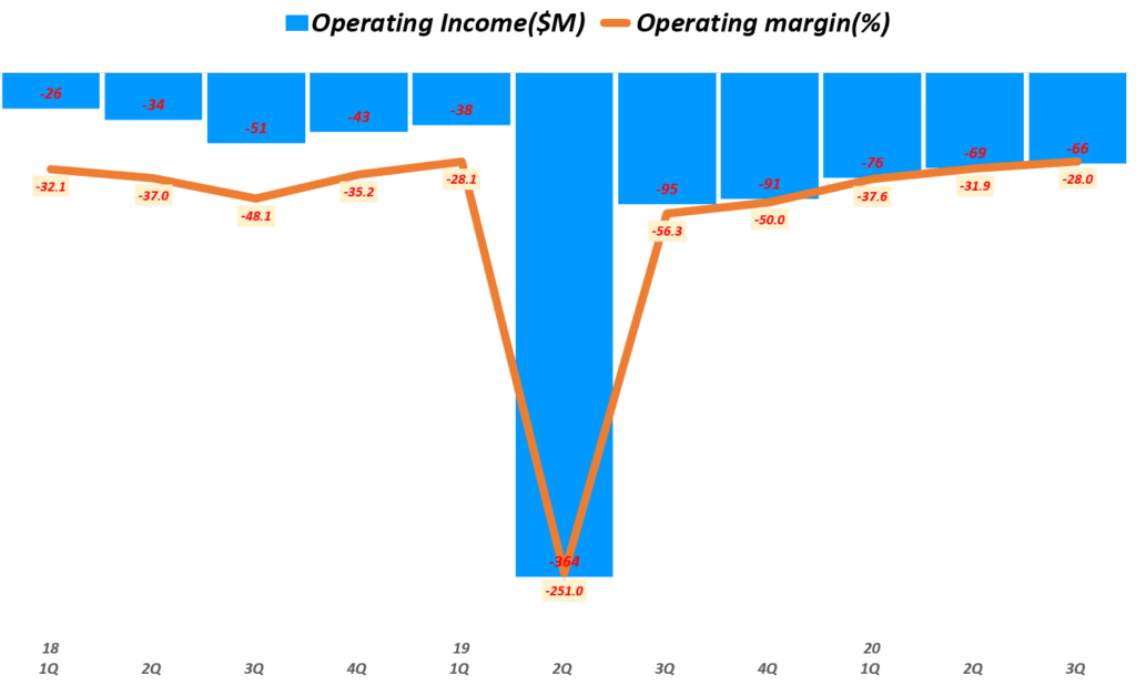 - 또한 영업이익도 매출이 상당한 수준으로 증가함에도 불구하고 적자를 면치 못하면서 지속 성장에 대한 의구심을 불러 왔음