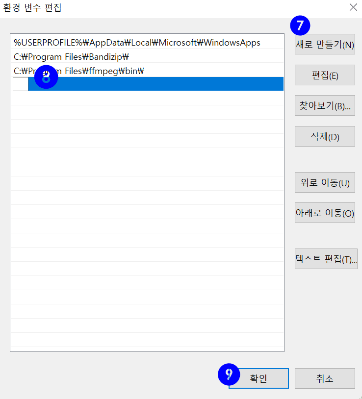 동영상 변환 프로그램, ffmpeg 환경 변수 설정을 위한 환경 변수 편집