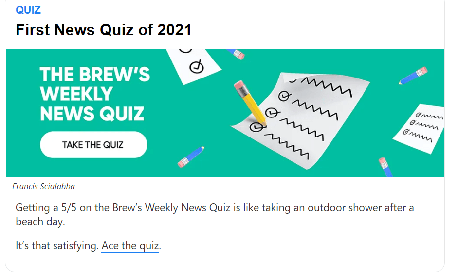 모닝브루 뉴스레터 사례, 퀴즈
