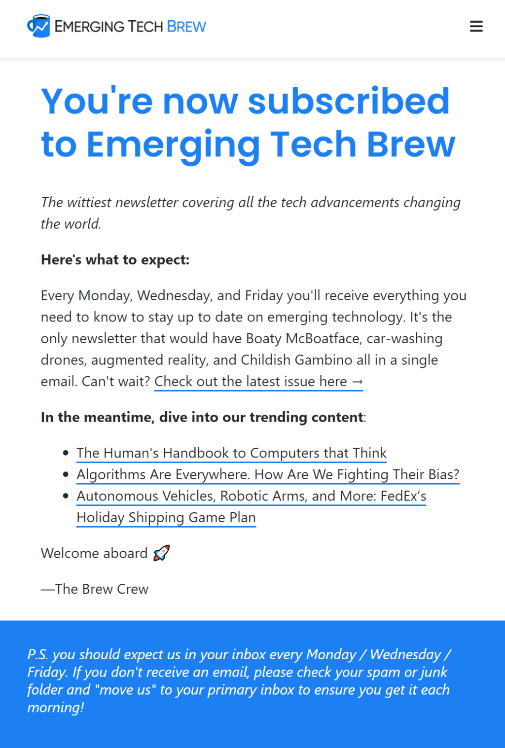 [참고] Emerging Tech Brew 환영 메일