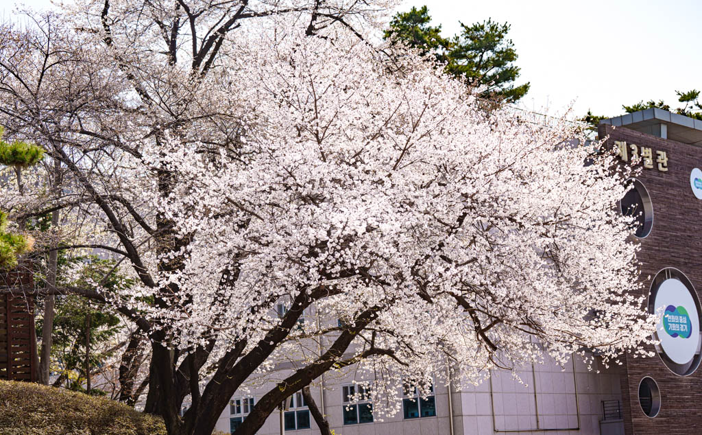 - 구 경기도청 제3별관 뒤편 언덕에 흐드러지게 핀 벚꽃 군락 풍경