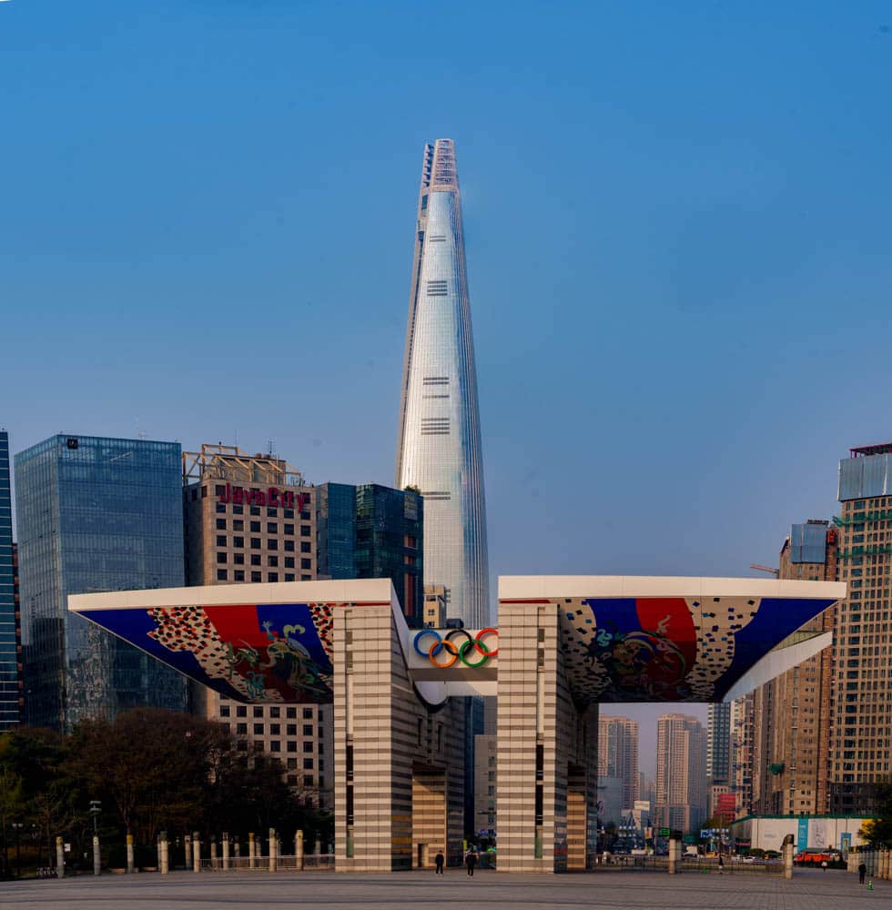 아래는 망원으로 담아 합친 올림픽공원 평화의문 모습