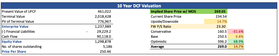 이 기준에 따르면 내재가치는 주당 약 269달러로 산출된다. 즉, 현재 주가는 소폭 할인 거래 중이다.