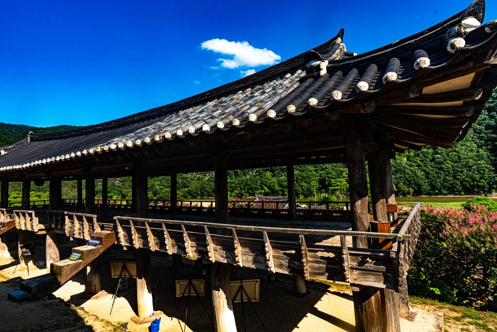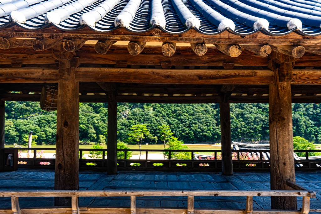 서원의 중심에 서 있는 만대루(晩對樓)에 오르면, 병산서원만의 진짜 풍경이 눈앞에 시원하게 펼쳐진다. 탁 트인 누각에서 바라본 낙동강은 굽이굽이 흐르며 서원을 감싸 안듯 유유히 흘러간다.
