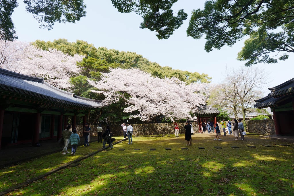 - 삼성혈 벚꽃은 삼성혈 사당과 승보당이라 불리우는 학생들이 공부하던 건물을 배경으로 전통 가옥과 어울어지는 멋진 풍광을 담을 수 있습니다.