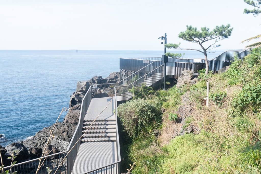 주상절리 티켓 검사소를 지나념 아래와 같은 소나무사이 길을 만난다. 여기를 지나면 데크 계단길이 나온다.