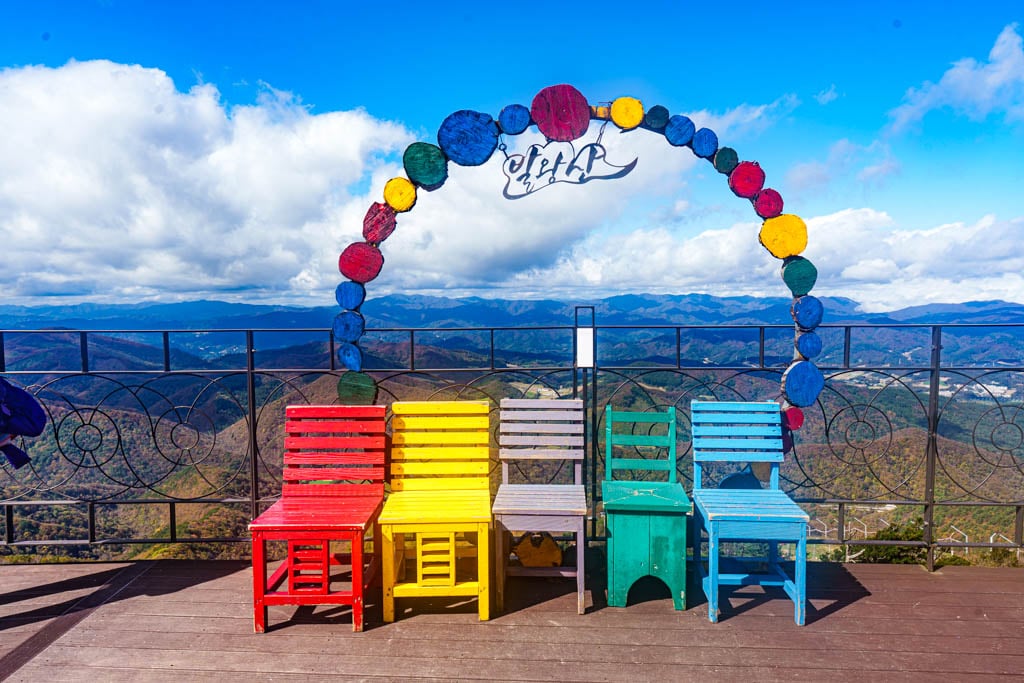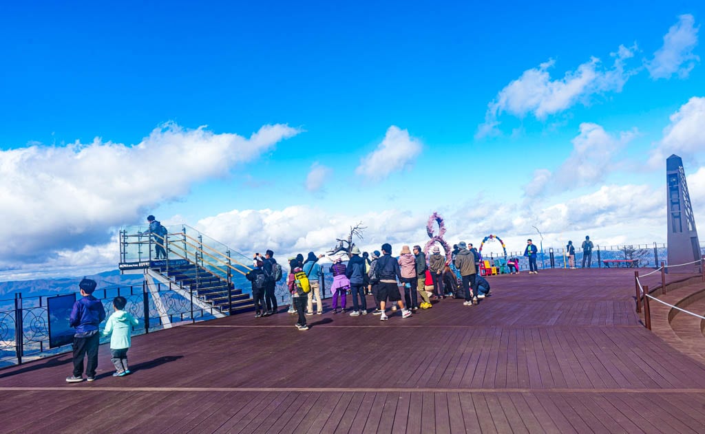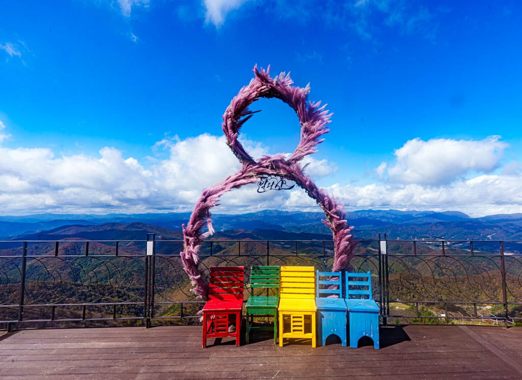 발왕산케이블카에서 내려 밖으로 나오면 겨울이면 스키 출발점이 되는 광장 왼편 데크에 이러저런 포토존이 마련되어 있어 기념사진을 좋아하는 방문객들로 인산인해를 이루고 있다.